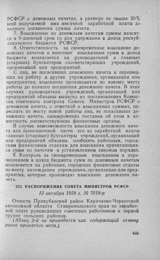 Распоряжение Совета Министров РСФСР 13 октября 1958 г. № 7018-р