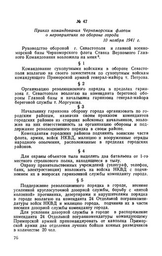 Приказ командования Черноморским флотом о мероприятиях по обороне г...