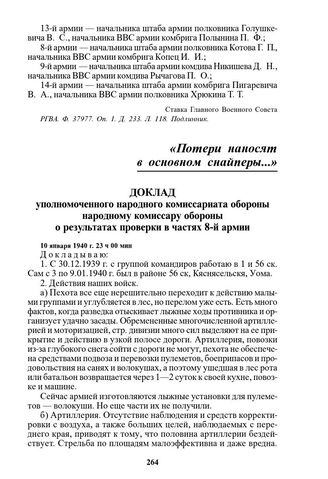 Доклад уполномоченного народного комиссариата обороны народному комиссару обороны о результатах проверки в частях 8-й армии. 10 января 1940 г. 23 ч 00 мин // РГВА. Ф. 33987. Оп. 3. Д. 1378. Л. 189-192. Подлинник.