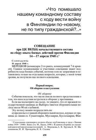 Совещание при ЦК ВКП(б) начальствующего состава по сбору опыта боевых действий против Финляндии 14-17 апреля 1940 г. Стенограмма, 16 апреля 1940 г.