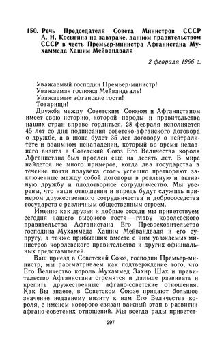 Речь Председателя Совета Министров СССР А. Н. Косыгина на завтраке, данном правительством СССР в честь Премьер-министра Афганистана Мухаммеда Хашим Мейвандваля. 2 февраля 1966 г. // Печат. по газ. «Правда», 3 февраля 1966 г.