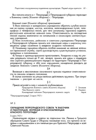 Обращение Петроградского Совета "К рабочим и работницам, морякам и красноармейцам Красного Петрограда". 3 марта 1921 г. // "Петроградская правда", 3 марта 1921 г.