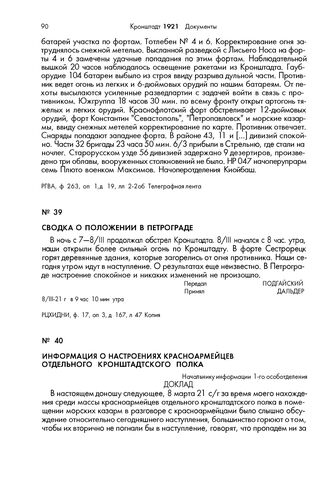 Сводка о положении в Петрограде. 8/III-21 г. // РЦХИДНИ, ф. 17, оп. 3, д. 167, л. 47. Копия.