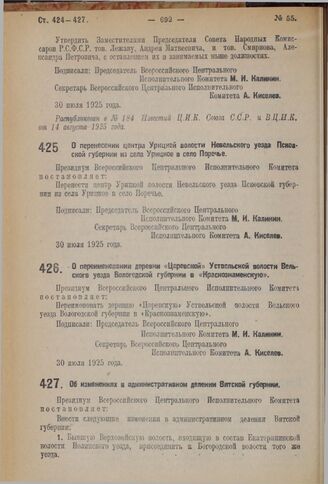 Декрет Всероссийского Центрального Исполнительного Комитета. Об изменениях в административном делении Вятской губернии. 30 июля 1925 года