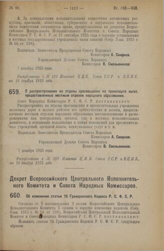 Декрет Всероссийского Центрального Исполнительного Комитета и Совета Народных Комиссаров. Об изменении статьи 76 Гражданского Кодекса Р.С.Ф.С.Р. 7 декабря 1925 года