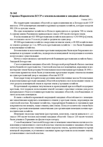 Справка Наркомзема БССР о землепользовании в западных областях. 9 июня 1945 г.