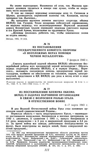 Из постановления пленума обкома ВКП(б) О задачах партийной организации в связи с возросшей ролью Урала в отечественной войне. 4-7 марта 1943 г. // ПАПО, ф. 105. оп. 1. л. 131. л. 60-60 об.