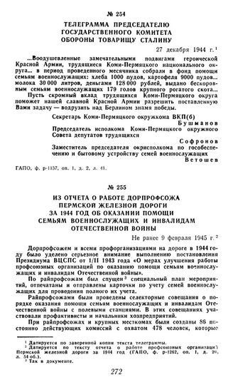 Телеграмма Председателю Государственного Комитета Обороны товарищу Сталину. 27 декабря 1944 г. // ГАПО, ф. р-1137, оп. 1, д. 2. л. 41.