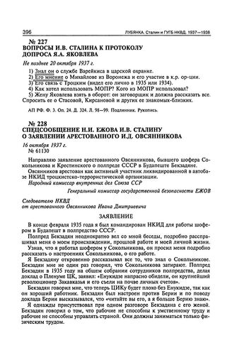 Спецсообщение Н.И. Ежова И.В. Сталину о заявлении арестованного И.Д. Овсянникова. 16 октября 1937 г. // АП РФ. Ф. 3. Оп. 24. Д. 324. Л. 84-88. Подлинник. Машинопись.