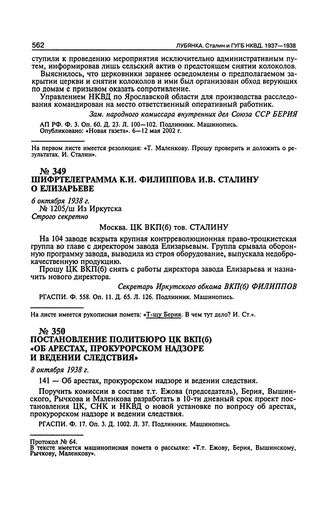 Главная Серия «Россия. XX век. Документы» Лубянка. Сталин и Главное управление госбезопасности НКВД. 1937-1938 Постановление Политбюро ЦК ВКП(б) «Об арестах, прокурорском надзоре...