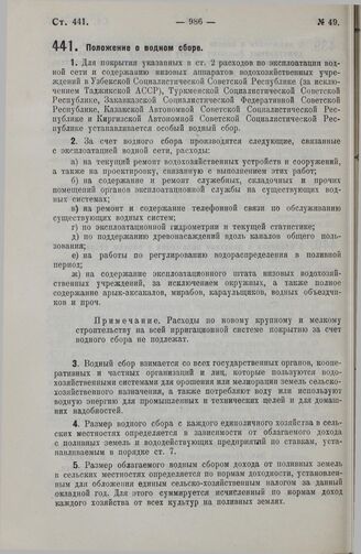 Постановление Центрального Исполнительного Комитета и Совета Народных Комиссаров. Положение о водном сборе. 24 июля 1929 г.