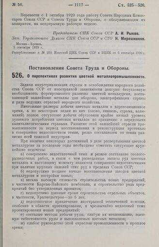 Постановление Совета Труда и Обороны. О перспективах развития цветной металлопромышленности. 2 августа 1929 г.