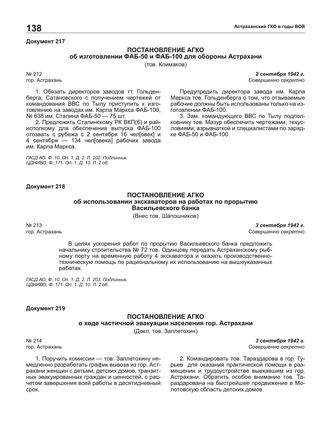 Постановление АГКО № 214 о ходе частичной эвакуации населения гор. Астрахани. 3 сентября 1942 г.