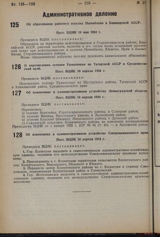 Об образовании рабочего поселка Ишимбаево в Башкирской АССР. Пост. ВЦИК 10 мая 1934 г.