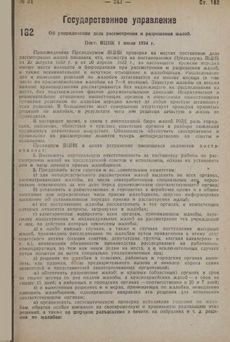 Об упорядочении дела рассмотрения и разрешения жалоб. Пост. ВЦИК 1 июля 1934 г.