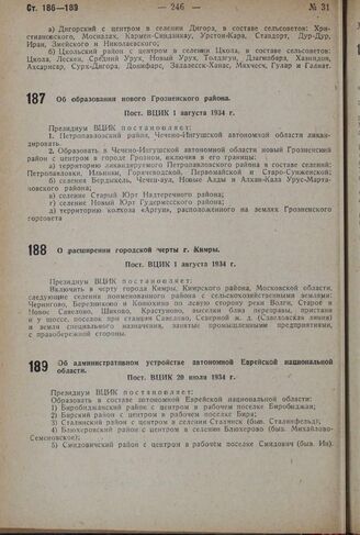 О расширении городской черты г. Кимры. Пост. ВЦИК 1 августа 1934 г.