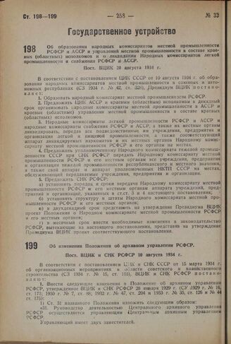 Об изменении Положения об архивном управлении РСФСР. Пост. ВЦИК и СНК РСФСР 10 августа 1934 г.
