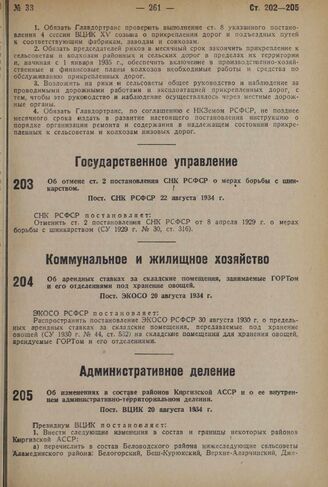 Об изменениях в составе районов Киргизской АССР и о ее внутреннем административно-территориальном делении. Пост. ВЦИК 20 августа 1934 г.