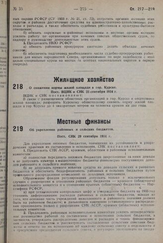 О снижении нормы жилой площади в гор. Курске. Пост. ВЦИК и СНК 25 сентября 1934 г.
