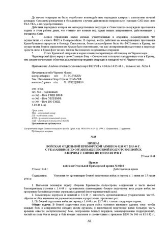 Приказ войскам отдельной Приморской армии № 0218 от 25.5.44 г. с указаниями по организации боевой подготовки войск в период с 1 июня по 15 июля 1944 г.