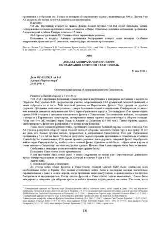 Главная Республики, области и города СССР в годы Великой Отечественной войны Крым, 1944 Доклад адмирала Черного моря об эвакуации крепости Севастополь. 23 ...