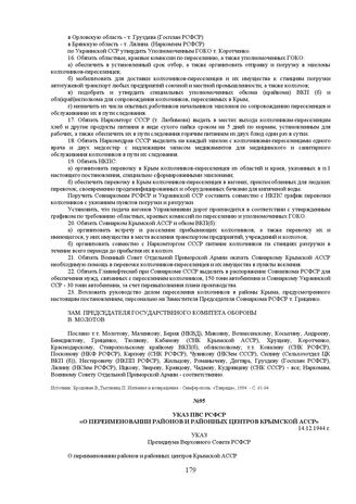 Указ ПВС РСФСР «О переименовании районов и районных центров Крымской АССР». 14 декабря 1944 г.