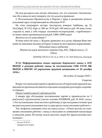 Информационная сводка парткома Кировского завода в ЛГК ВКП(б) о реакции рабочих завода на постановление СНК СССР, ЦК ВКП(б) и ВЦСПС об укреплении трудовой дисциплины от 28 декабря 1938 г. Не позднее 31 января 1939 г.