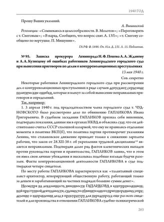 Записка прокурора Ленинграда Н.Ф. Попова А.А. Жданову и А.А. Кузнецову об ошибках работников Ленинградского городского суда при вынесении приговоров по делам о контрреволюционных преступлениях. 13 мая 1940 г. // ЦГАИПД СПб. Ф. 24. Оп. 2в. Д. 4291. Л. 20‑23. Подлинник.