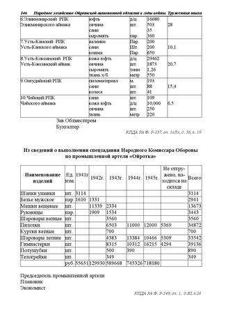 Из сведений о выполнении спецзадания Народного Комиссара Обороны по промышленной артели «Ойротка» // КПДА РА. Ф. P-249, оп. 1, д. 80, л. 24.