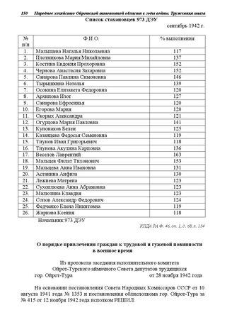 Из протокола заседания исполнительного комитета Ойрот-Турского аймачного Совета депутатов трудящихся. О порядке привлечения граждан к трудовой и гужевой повинности в военное время. г. Ойрот-Тура. 28 ноября 1942 г. // КПДА РА. Ф. Р-112, оп. 1, д. 284, лл. 13-14.
