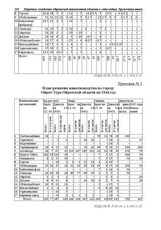 План развития животноводства по городу Ойрот-Тура Ойротской области на 1944 год // КПДА РА. Ф. P-36, оп. 1, д. 414, л. 22.
