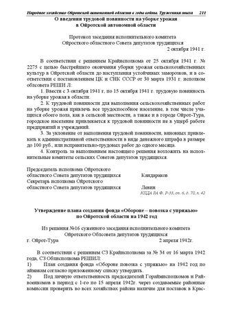 Из решения №16 суженного заседания исполнительного комитета Ойротского Облсовета депутатов трудящихся. Утверждение плана создания фонда «Обороне - повозка с упряжью» по Ойротской области на 1942 год. г. Ойрот-Тура. 2 апреля 1942 г. // КПДА РА. Ф. Р-68, оп. 5, д. 8, л. 57.