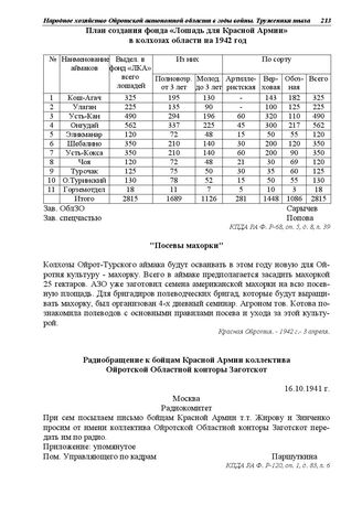 Радиообращение к бойцам Красной Армии коллектива Ойротской Областной конторы Заготскот. 16.10.1941 г. // КПДА РА. Ф. Р-120, оп. 1. д. 83. л. 6, 7.