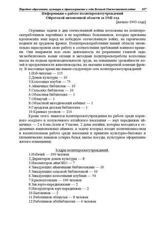 Информация о работе политпросветучреждений Ойротской автономной области за 1942 год. [Начало 1943 г. ]
