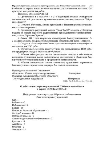 Главная Республики, области и города СССР в годы Великой Отечественной войны Была война... Информация отдела культуры Ойротского облисполкома. О работе политп...