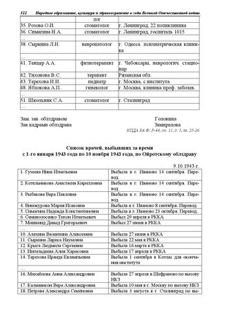 Список врачей, выбывших за время с 1-го января 1943 года по 10 нояб...