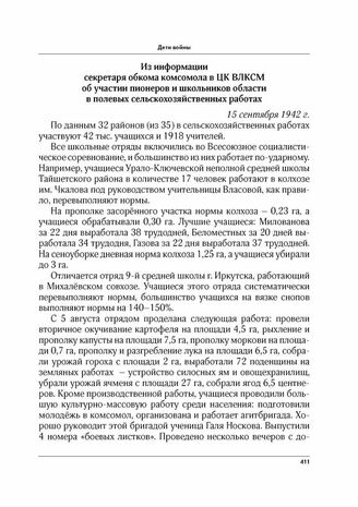 Из информации секретаря обкома комсомола в ЦК ВЛКСМ об участии пионеров и школьников области в полевых сельскохозяйственных работах. 15 сентября 1942 г.