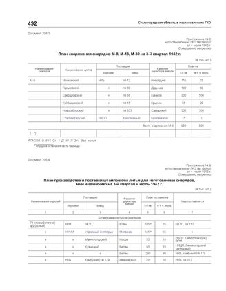 Приложение № 9 к постановлению ГКО № 1960сс от 04.07.1942 г. «План производства и поставки штамповки и литья для изготовления снарядов, мин и авиабомб на 3-й кв. и июль 1942 г.» // РГАСПИ. Ф. 644. Оп. 1. Д. 40. Л. 252-255. Зав. копия.