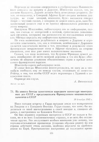 Из записи беседы заместителя народного комиссара иностранных дел СССР с представителем Французского национального комитета в СССР. 30 декабря 1942 г. // Печат. по арх.