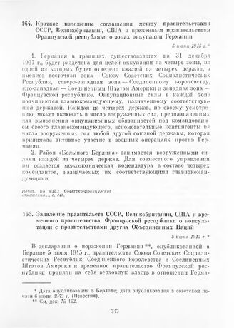 Заявление правительств СССР, Великобритании, США и временного правительства Французской республики о консультации с правительствами других Объединенных Наций. 5 июня 1945 г. // Печат. по изд.: Советско-французские отношения..., с. 447.