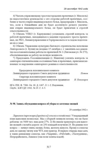 Стенограммы заседаний исполкома Ленинградского городского Совета. Записи обсуждений, замечаний к проектам, решения (ноябрь 1941–декабрь 1942 гг.): Сб. док. — СПб.: Арт-Экспресс, 2017.
