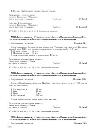 Распоряжение № 140 Исполнительного Комитета Камчатского областного Совета депутатов трудящихся об отпуске продуктов питания для спецконтингента. г. Петропавловск-Камчатский. 25 сентября 1945 г. // КГУ ГАКК. Ф. Р-88. Оп. 1. Д. 102. Л. 149. Машинописный подлинник.