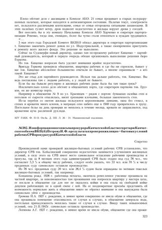 Из информационного письма прокурора Камчатской области секретарю Камчатского обкома ВКП(б) Петрову И.Ф. о результатах проверки жилищно-бытовых условий рабочих СРВ прокуратурой Камчатской области // КГУ ГАКК. Ф. П-2. Оп. 2. Д. 798. Л. 66-68. Машинописный подлинник.
