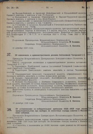 Постановление Всероссийского Центрального Исполнительного Комитета. Об установлении на избирательную кампанию 1928-1929 года нормы представительства при выборах на волостные съезды советов в Московской губернии. 10 декабря 1928 г.