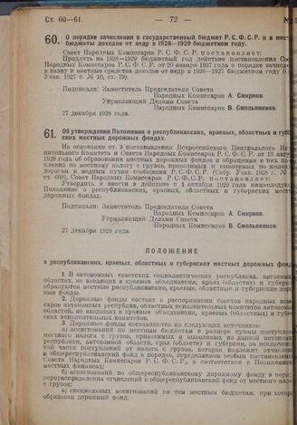 Постановление Совета Народных Комиссаров. О порядке зачисления в государственный бюджет РСФСР и в местные бюджеты доходов от недр в 1928-1929 бюджетном году. 27 декабря 1928 г.