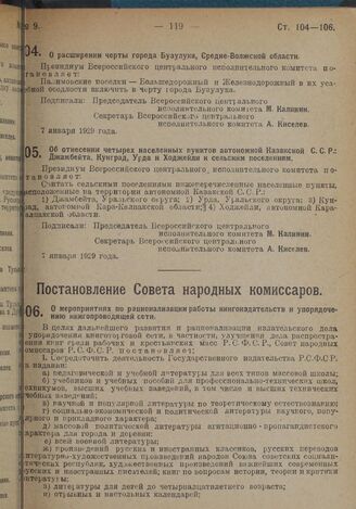 Постановление Всероссийского Центрального Исполнительного Комитета. О расширении черты города Бузулука, Средне-Волжской области. 7 января 1929 г.