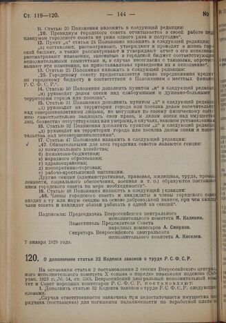 Постановление Всероссийского Центрального Исполнительного Комитета и Совета Народных Комиссаров. О дополнении статьи 32 Кодекса законов о труде РСФСР. 7 января 1929 г.