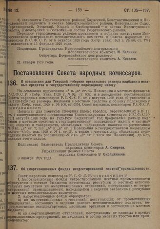 Постановление Совета Народных Комиссаров. О повышении для Тверской губернии предельного размера надбавки в местные средства к государственному подоходному налогу. 8 января 1929 г.