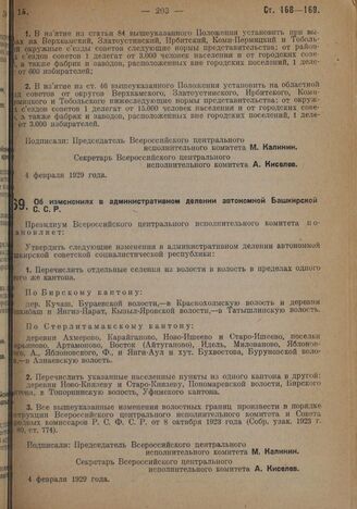 Постановление Всероссийского Центрального Исполнительного Комитета. Об изменениях в административном делении автономной Башкирской ССР. 4 февраля 1929 г.