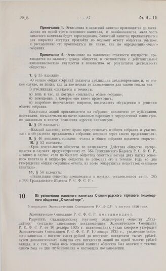 Об увеличении основного капитала Сталинградского торгового акционерного общества „Сталпайторг”. Утверждено Экономическим Совещанием РСФСР 4 августа 1926 г.